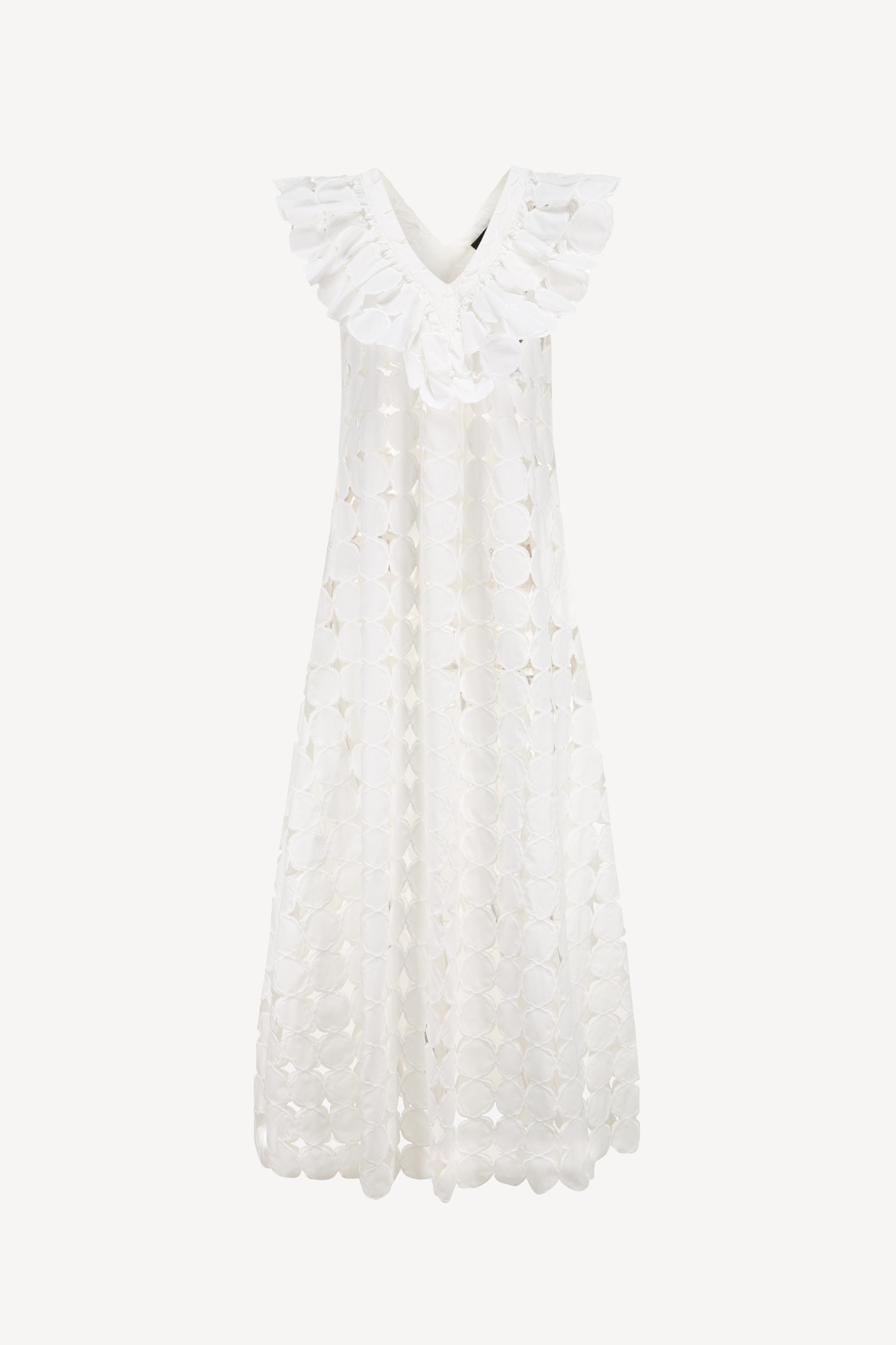 Make a statement in our beloved 15 Dress, crafted in modern broderie anglaise, this floor-length silhouette features a deep V-neck framed with delicate frill trim.